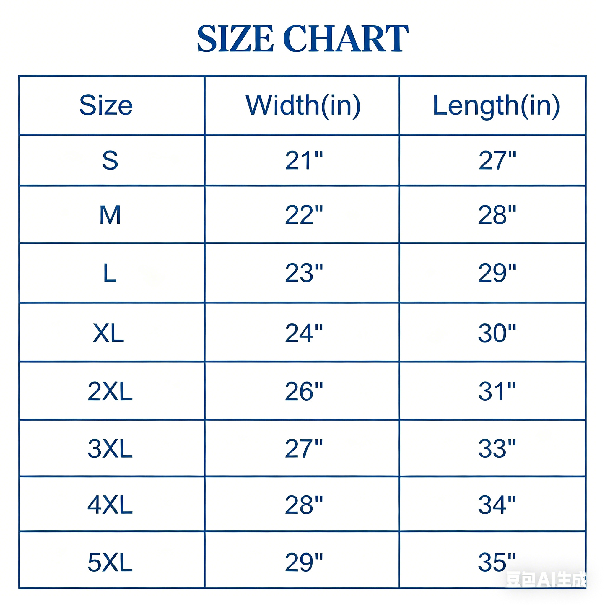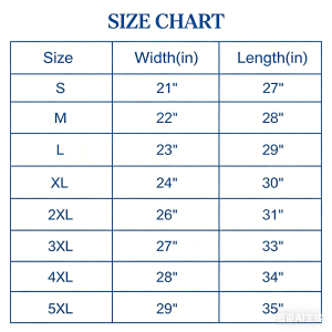 3XL:Width=27″ / Length=33″